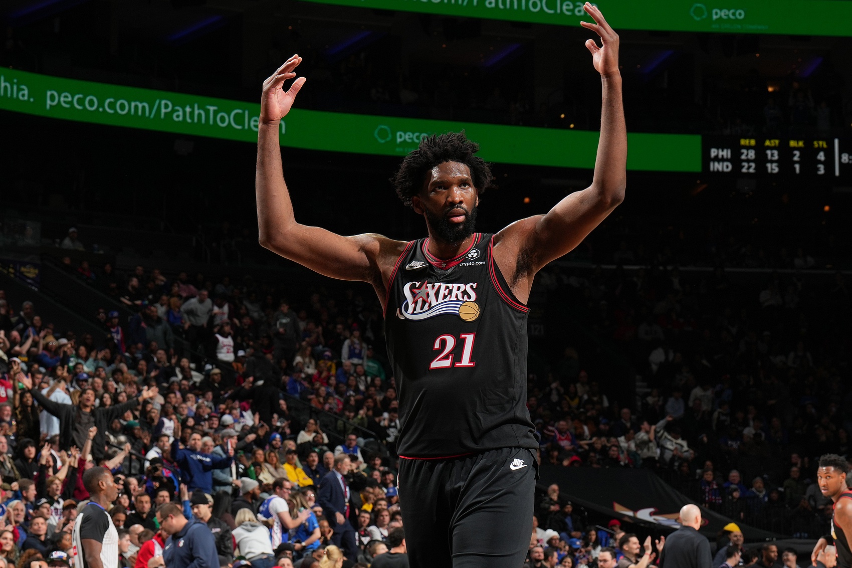 此役,恩比德出战38分6秒,投篮28中11,三分6中1,罚球12中11,得到34分10篮板8助攻1抢断2盖帽。
