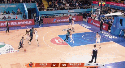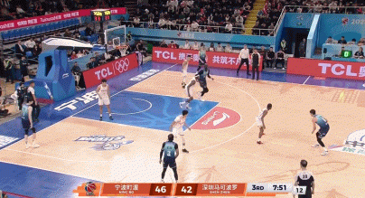 而深圳队针对这个特点,干脆让他在防守端扮演底线游荡者,负责给对球施压的中锋补位(然后可以的话再扫荡出去)。