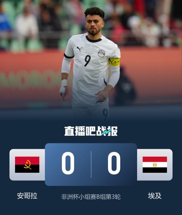 非洲杯小组赛B组第3轮,安哥拉0-0战平埃及,萨拉赫、马尔穆什未登场。