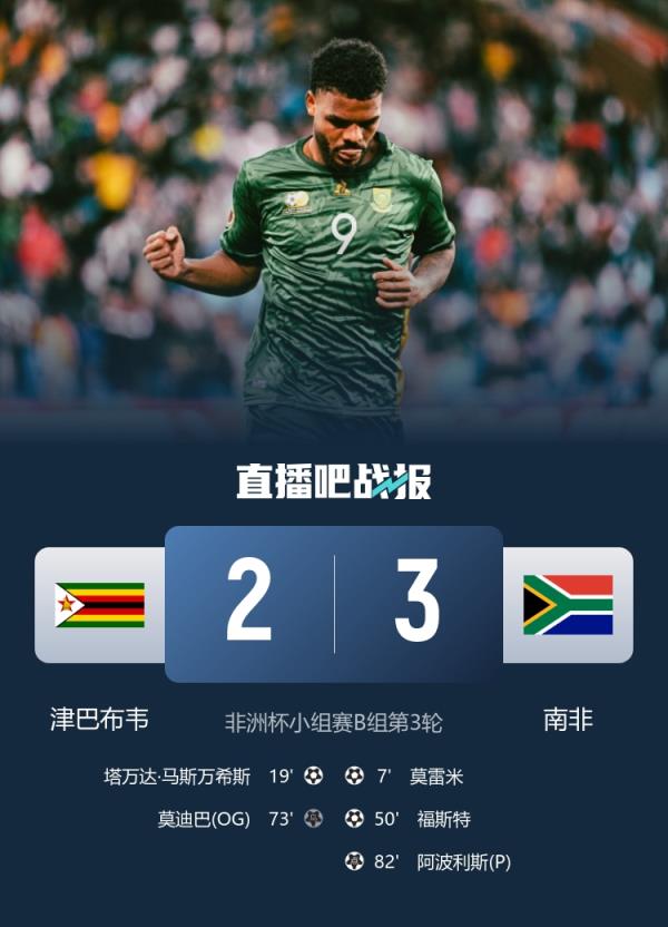 非洲杯小组赛B组第3轮,南非3-2战胜津巴布韦,以第二名晋级,阿波利斯点射制胜。